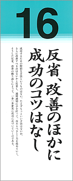 たえずもっといい方法はないか、さらに改善すべき点はないかと反省し、適時適切に手を打って、改めるべきところを改めていく。