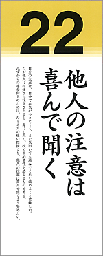 みずからの進歩向上のために、たとえ耳の痛い指摘でも、他人の注意は喜んで聞くよう努めたい。